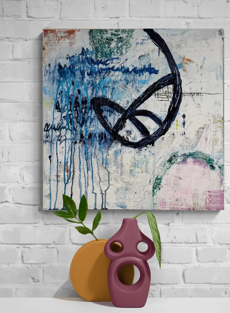 Where silence fractures, and emotions churn beneath the surface. Depths of Disquiet is an evocative abstract piece that delves into the turbulence of inner unrest. Layers of deep, inky blues and stark, fractured textures mirror the tension between stillness and upheaval. Fleeting marks and subtle drips trace the emotional weight of unspoken turmoil, rejection, and raw vulnerability. This painting invites the viewer to explore the depths of their own disquiet, where chaos and contemplation coexist in an ever-shifting balance.