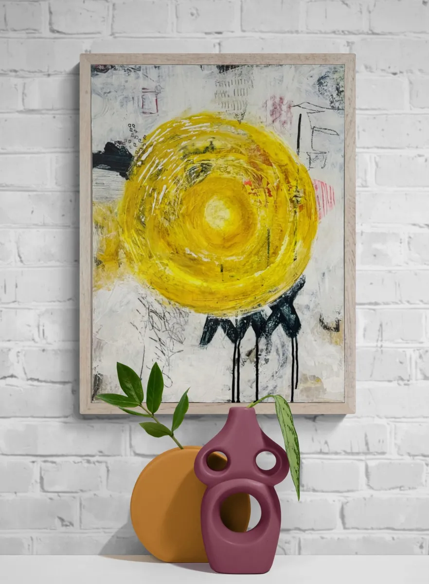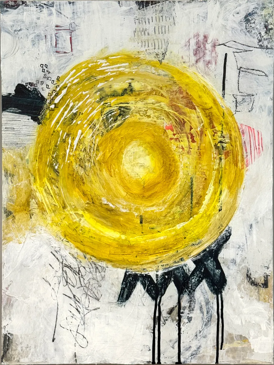 Where doubt and vulnerability collide, the self is laid bare. Chasm of Self delves into the raw, unfiltered depths of insecurity, anger, and self-doubt. The swirling golden core, both radiant and fractured, symbolizes the struggle between inner strength and emotional turmoil. Layers of texture and abstraction echo the tension of feeling exposed yet unseen, vulnerable yet resilient. Dripping marks and chaotic scribbles reflect the weight of internal conflict—an unraveling, a reckoning, a search for truth within the void.